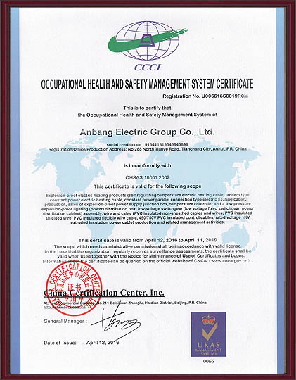 安邦電氣股份有限公司,總部位于北京市長安街,成立于2004年,注冊資金10088萬。安徽生產基地占地面積63000平方米,擁有66套各類生產線,其中進口生產線6套。國家高新技術型企業(yè),滁州市市長質量獎企業(yè),專精特新“小巨人”企業(yè),擁有國家知識產權局授權的45項專利,其中發(fā)明專利28項 , 主筆《太陽能熱利用自限溫電熱帶安裝規(guī)范》行業(yè)標準,參編《自限溫電伴熱帶》國家標準、《工業(yè)和商業(yè)用電阻式伴熱系統(tǒng)》國家標準、《太陽能熱利用自限溫電熱帶》行業(yè)標準、《爆炸性環(huán)境 電阻式伴熱器》國家標準等7項國家標準。企業(yè)通過UL認證,國家強制性 CCC產品認證,ISO9001質量管理體系認證,ISO14001環(huán)境管理體系認證,ISO45001職業(yè)健康安全管理體系認證,Q/SHS0001.1健康、安全與環(huán)境管理體系認證,歐盟防爆ATEX認證,歐盟CE認證,RoHS認證,俄羅斯海關聯(lián)盟認證,國家防爆電氣CCC證書。產品系列:集膚伴熱系統(tǒng)、電伴熱系統(tǒng)、電加熱器、電地暖系統(tǒng)、集儀器儀表、電線電纜、高低壓配電柜(箱)、電纜橋架、閥門管件等等設計、制造、銷售。產品應用于航天航空、軍工、石油、石化、天然氣、機場、化工、鋼鐵、隧道、消防、養(yǎng)殖、融雪化冰、室內供暖、國家電網及眾多電廠等等國家重點工程。出口美國、英國、德國、俄羅斯、韓國、日本、哈薩克斯坦、烏克蘭、伊朗等眾多國家。